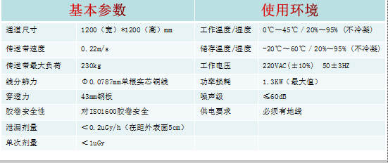 X射線源:電壓120~160KV/電流0.4~1.2mA